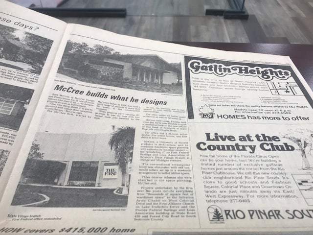 Because McCree Contractors & Architects can trace its roots to 1911 and the founding of the company to 1926, we occasionally come across old articles and news clippings. This one from the Sun Sentinel, the predecessor to the Orlando Sentinel, features Bert McCree and opens with, “Bert McCree of McCree Design and Construction Co. is of those fellows who does it all — he designs projects as he builds them.”