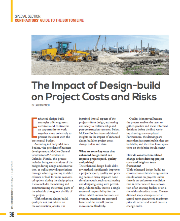 The May 2019 issue of Construction Executive Magazine features an interview with Cindy McCree-Bodine, Vice President of Business Development at McCree.