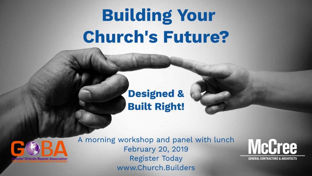 February 20, 2019, McCree Training Room, Orlando, FL sponsored by Greater Orlando Baptist Association, United Heritage Bank, Crossman & Associates, Ramski and Company, and McCree General Contractors & Architects.